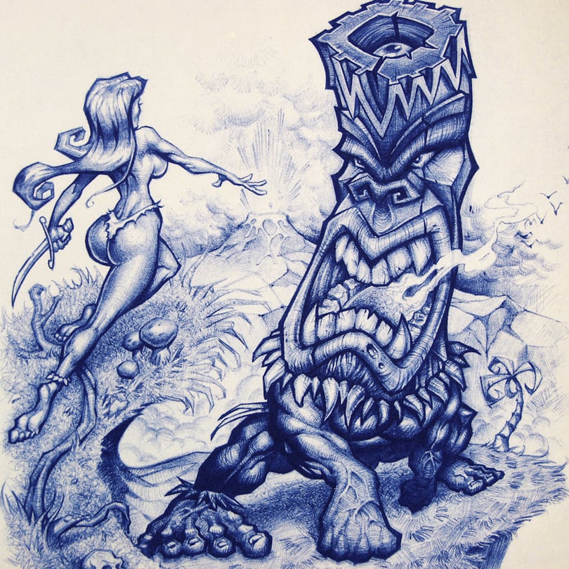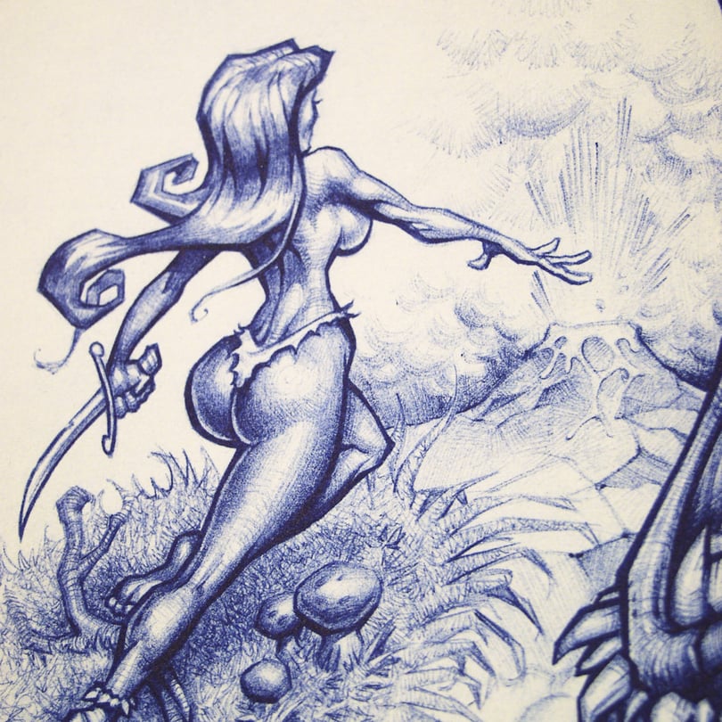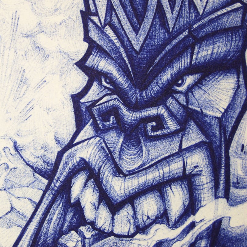 This fine intaglio print is the second of a pair completed in conjunction with up-and-coming artist Hassan Patterson. It was made from an exclusive ballpoint pen drawing by Hassan and has been printed on Rives BFK printmaking paper.